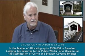 Presenter: Two covered bridges in the Cottage Grove area are at risk of imminent failure. Seeking help Feb. 3 from...