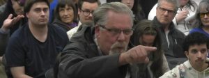 Alan Zelenka (upper right) discusses fire hazards in South Eugene at a Town Hall July 8.