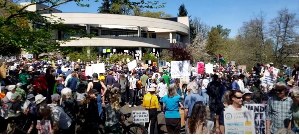 Presenter: KEPW News regularly speaks with longtime local activists. Today, a look back at the first big anti-Trump protest in Eugene, as Indivisible, 50501, and others drew over 2,500 to City Hall April 5. Mark Robinowitz:
