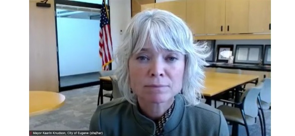 [00:04:35] Kaarin Knudson (Eugene, mayor): Certainly city of Eugene has been very engaged in the statewide work to stand up the sustainable shelter funding bill. We have great partnerships with our county partners in this work. And I do think that looking into the future, it’s going to be increasingly important for all communities and our state to really be able to see the quality and the efficiency and the effectiveness of the work that is happening here in Lane County.