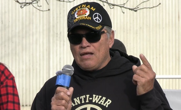 Frank Harper Hello. My name is Frank Harper, and I’m stand here representing Veterans For Peace right here. And I’m so proud to see all of you here. And it makes me think about, as a Vietnam veteran, there are 58,479 names on the Vietnam Memorial wall. That was one of the last wars to end all wars. And here we are.