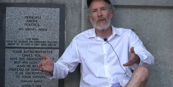 Presenter Rewind with Todd Boyle goes back to the year 2019 and a series of statements in the Wayne Morse Free Speech Plaza in downtown Eugene.