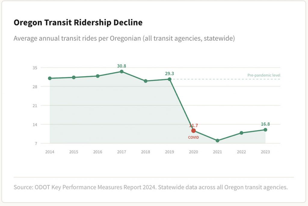 These are real interests, not frivolous ones. Transit serves low-income Oregonians who have no other option. Climate goals matter. But a transit system that costs nearly $8 in public subsidy per ride, serves a third fewer people than it did a decade ago, and is warning of 65% service cuts regardless, clearly needs structural reform. Democrats need to make that case to their allies rather than pretending the status quo is sustainable.