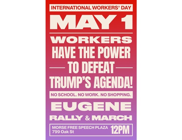 Presenter: You can join the celebration of International Workers Day Friday May 1  at the Wayne Morse Free Speech Plaza and the Park Blocks. The rally and march start at noon, with a community art event from 2 p.m. to 4:30 p.m.